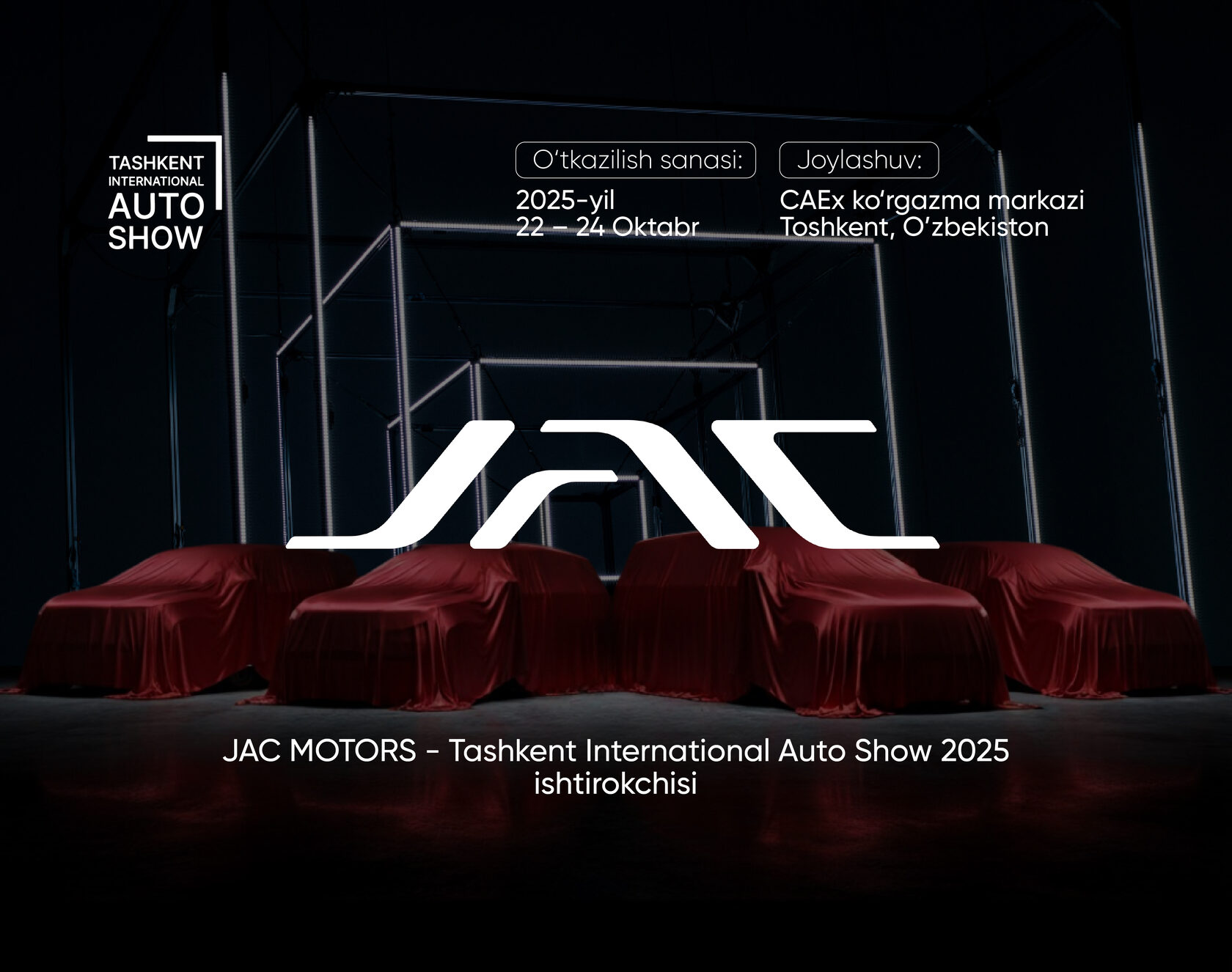 📢 Tashkent International Auto Show 2025 ko‘rgazmasida JAC Motors Toshkent stendida sizni kutamiz!